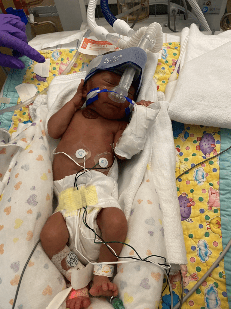 Barnaby came off the ventilator today and is on CPAP via a nasal mask that straps to his head and makes him look like an elephant seal. ğŸ¦