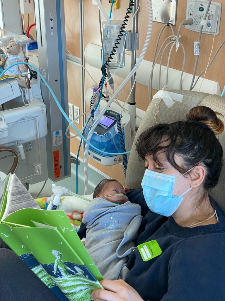 Wow, Ross, he’s growing so fast now. And how exciting about the CPAP numbers. Love the pic of Ana reading to him. So sweet.
